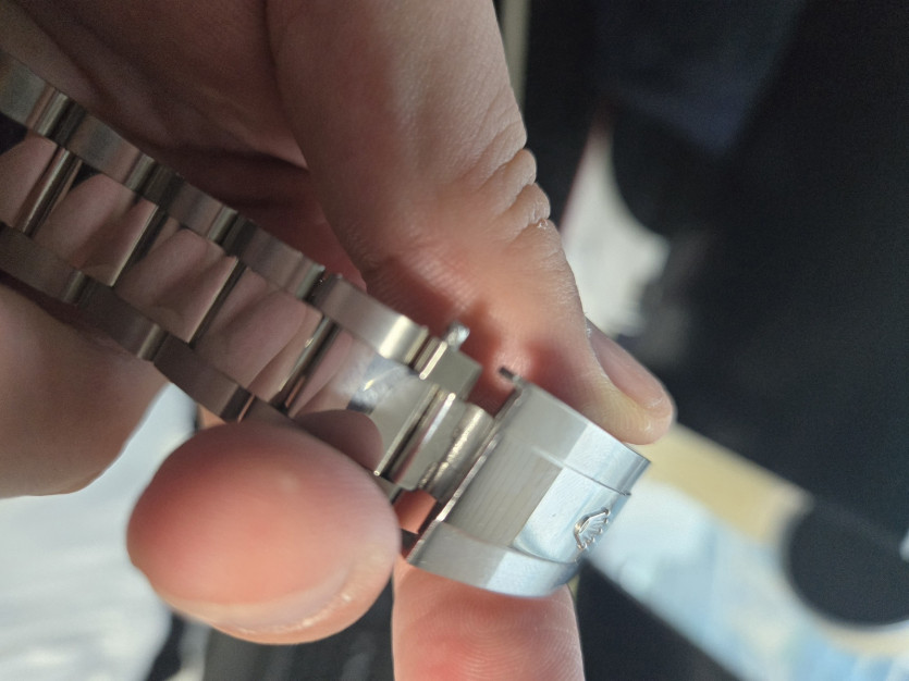 시계줄이 오자마자 분리되어있었고 어짜피 줄일거라 하나빼고 체결했는데 사진과같이 끝까지들어가지않습니다. 연락 기다릴게요~