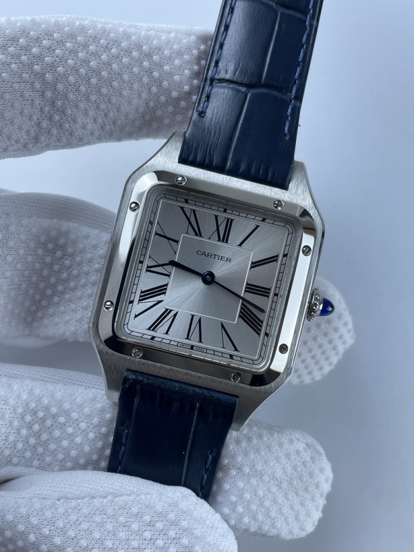 (준비완료/특급배송)NO.2134/AF공장 산토스31MM 실버다이얼 블루악어가죽스트랩